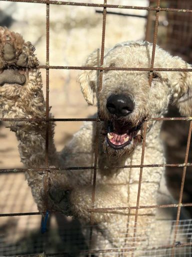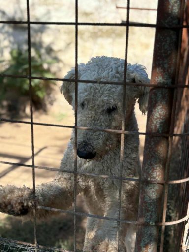 Er versteht sich im Tierheim nur bedingt mit seinen Artgenossen, was aber auch der Enge dort geschuldet sein könnte. Komondore sind Individualisten, die gerne auch räumlich gesehen ihren eigenen Bereich haben.
